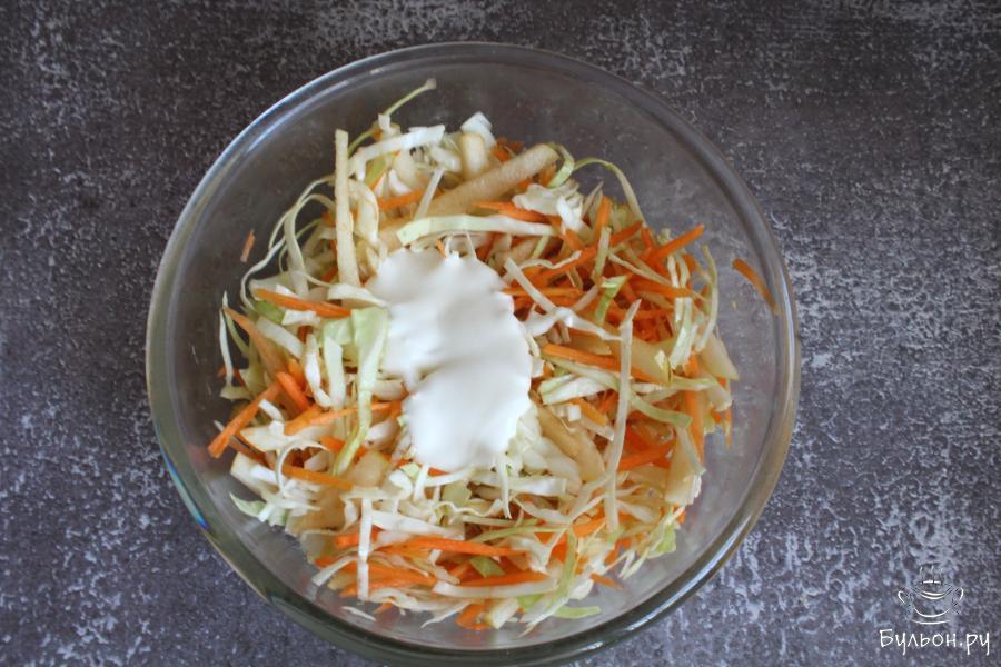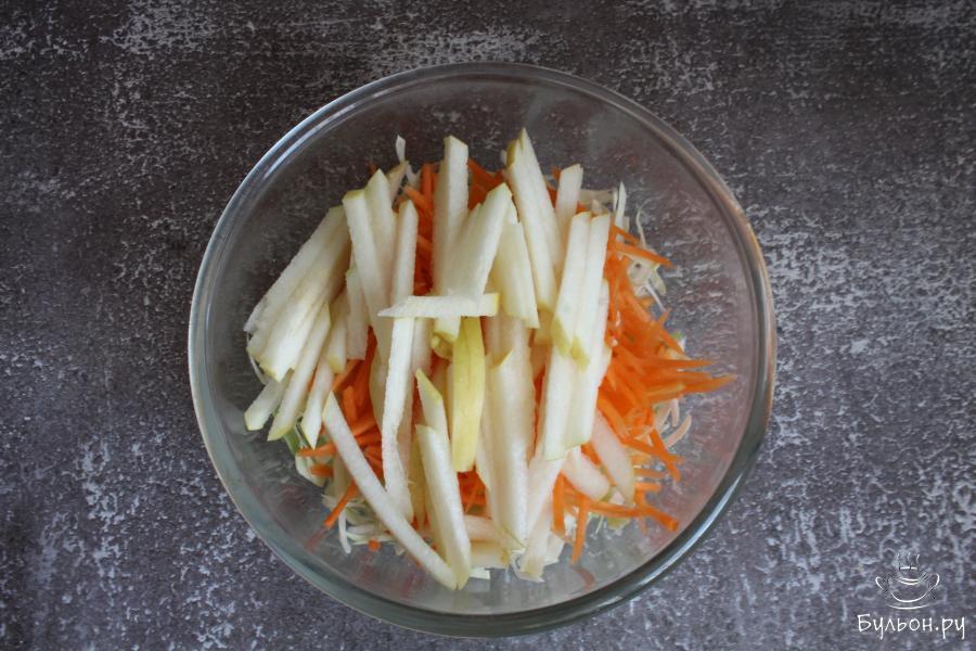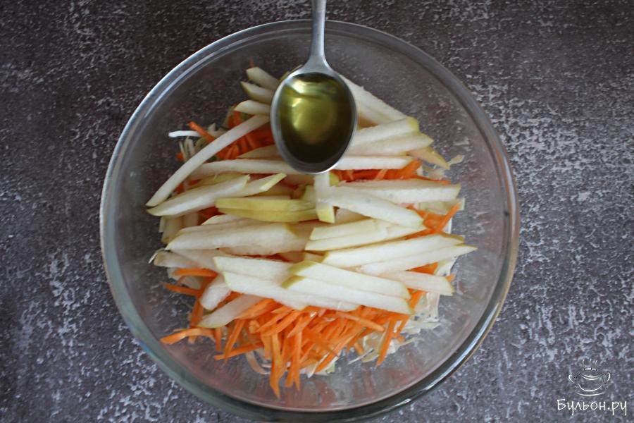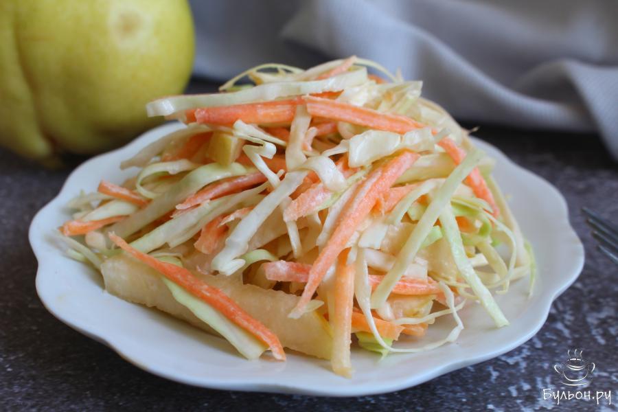 Если вам попались не очень удачные, кислые или пресные груши, то их всегда можно использовать для приготовления овощных салатов, они только украсят их вкус. Капустный салат с морковью и грушами получается очень сочный, хрустящий, полезный. Если вы хотите постный вариант салата, то сметану не добавляйте. Если вы любите майонез, то для заправки можно использовать его, вместо сметаны. Пробуйте все варианты.