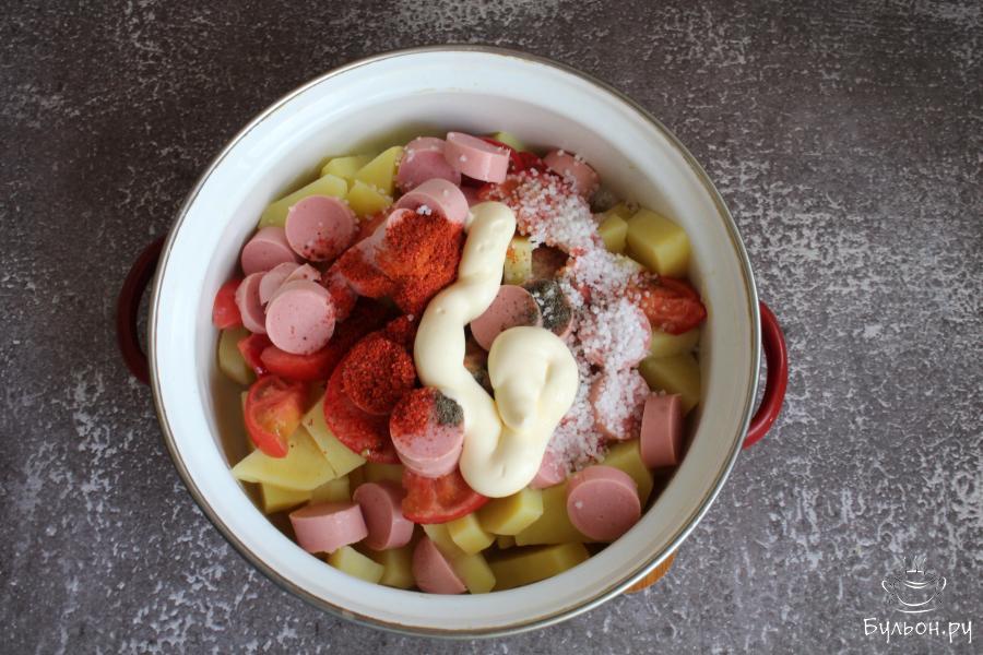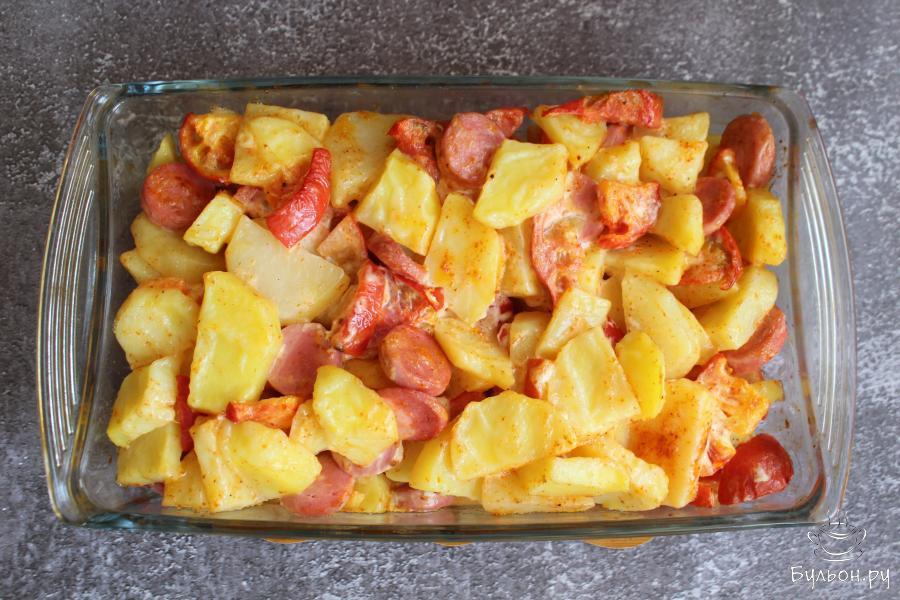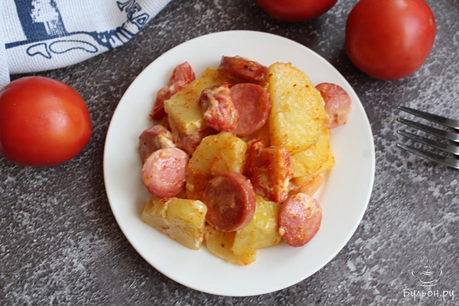 Если вы любите блюда из картошки, то попробуйте приготовить картофель с сосисками и помидорами в духовке. Блюдо простое, но очень вкусное. Картофель получается насыщенный, мягкий, сытный и вкусный. В это блюдо, по желанию, можно добавить тертый сыр, другие свои любимые пряности, все варианты будут вкусные. Помидоры для приготовления возьмите сладкие, потому, что во время запекания помидоры дадут заметную кислинку.