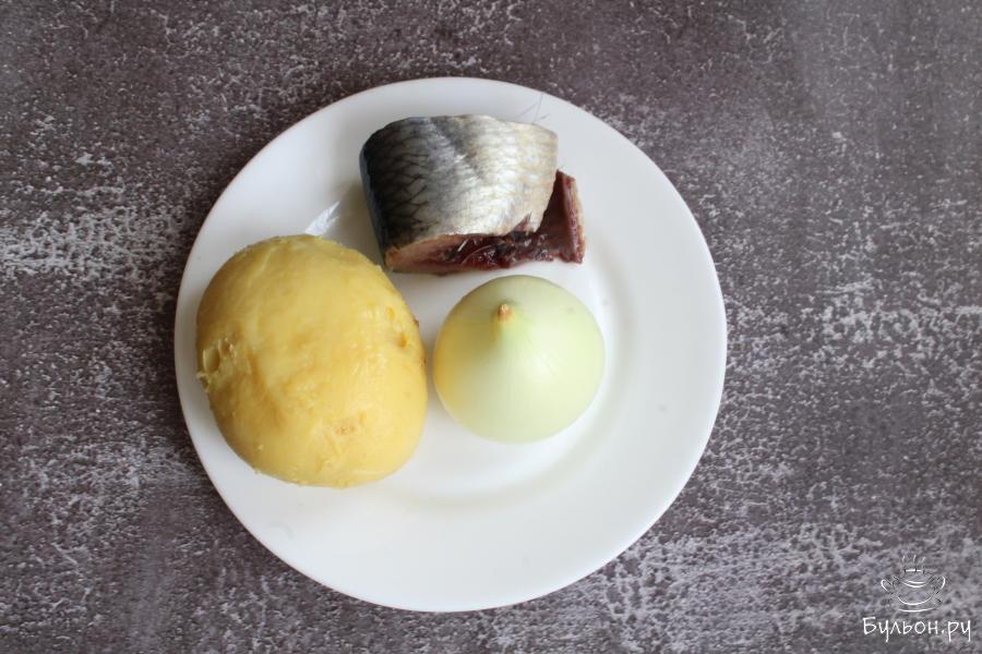 1. Сельдь почистить, промыть и разобрать на филе. Лук почистить, промыть. Картофель сварить в мундире и почистить.