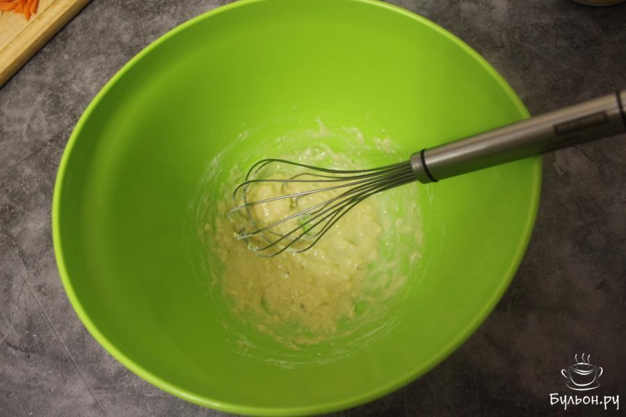 4. С картофеля слейте воду и переложите его в миску. Добавьте морковь, лук, зелень и соль. Все перемешайте. Затем добавьте еще 2-4 ст. л. муки и перемешайте. Поскольку размеры овощей могут быть использованы разного веса, здесь необходимо ориентироваться на свою овощную массу.