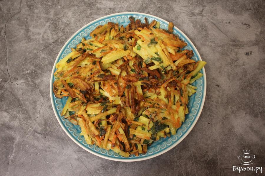 Все привыкли готовить из картофеля драники, либо же котлеты из пюре, но котлеты из соломки овощей готовят очень редко. Конечно, овощные хрустящие котлеты получаются не очень полезными, поскольку жарятся в большом количестве масла, однако они очень вкусные. Поэтому, мне кажется, иногда такое баловство себе можно позволить. На стол их лучше подавать с соусами, например, сырным, соевым или кетчупом. Приступим к готовке.