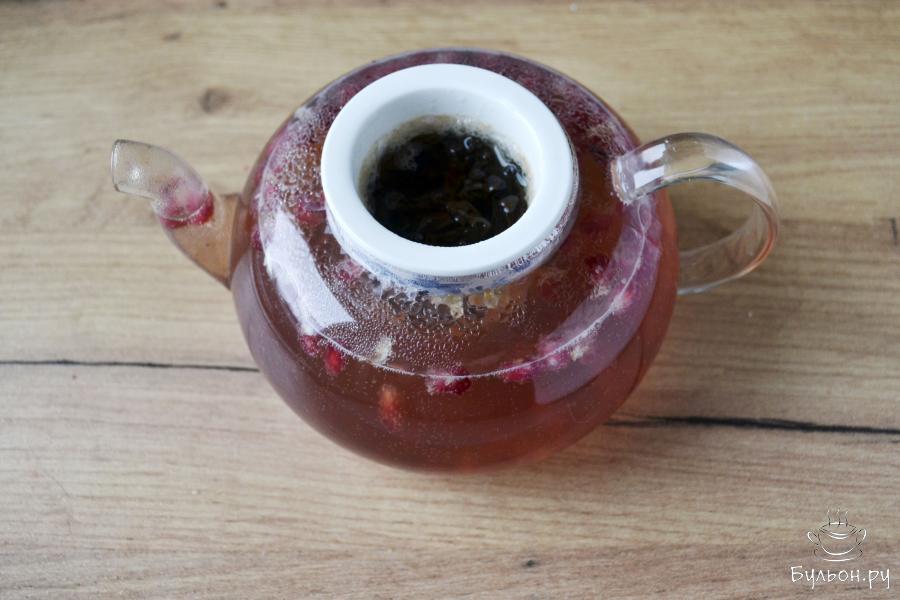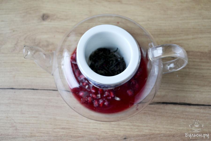 Фруктовые и ягодные чаи заняли прочное место в нашем меню наряду с черным и зеленым чаем. Предлагаю приготовить гранатовый чай. Для него нужен гранат и листовой черный чай. Сначала нужно размять зерна граната, чтобы они максимально отдали свой сок, переложить их в заварочный чайник. Всыпать листовой чай и залить горячей водой. После настаивания чай можно пить. По желанию, добавьте в чай сахар или мед. Напиток получается не только вкусный, но и полезный. В жару такой гранатовый чай хорошо пить охлажденным, можно добавить кубик льда.