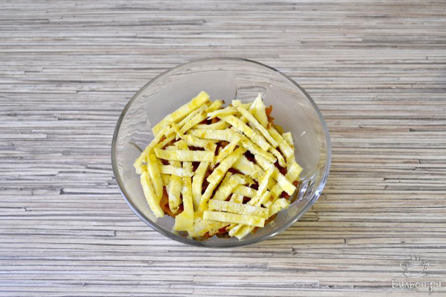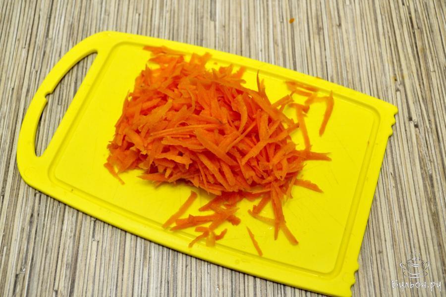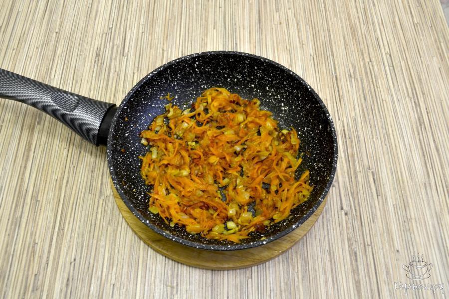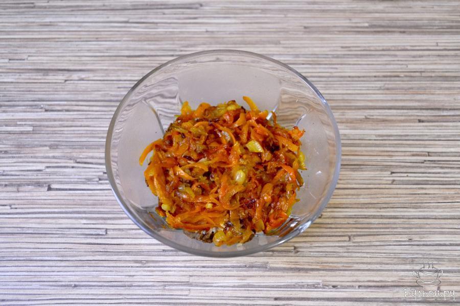 5. На растительном масле обжарьте морковь и лук до мягкости. Переложите овощи со сковороды на тарелку, чтобы остыли.