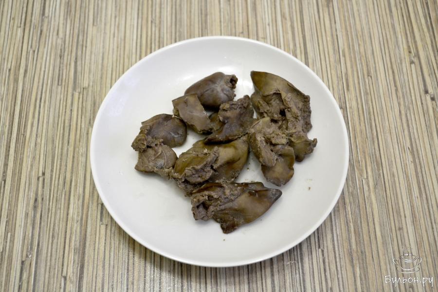 2. Выньте печень из молока, переложите в кастрюлю, залейте водой и варите после закипания в течение 15 минут. Во время варки посолите.