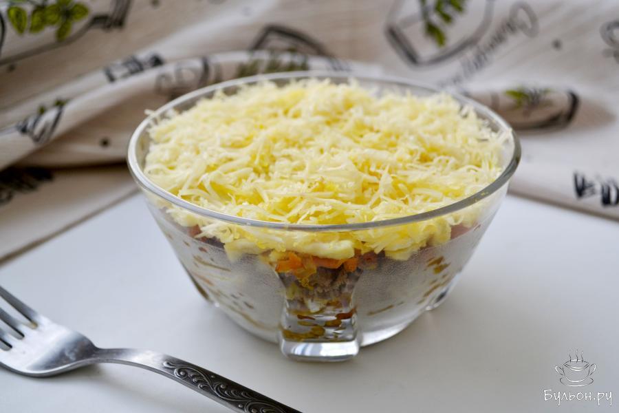 Куриная печень хорошо используется для приготовления салатов. Салат из куриной печени, моркови, сыра и яичных блинчиков можно приготовить как для повседневного меню, так и на праздничный стол. Салат получается очень вкусный и сытный. Его можно собрать слоями в общем салатнике или порционно, с использованием кулинарного кольца. Все продукты хорошо сочетаются по вкусу. Морковь придает легкую сладость, яичные блины - нежность салату, куриная печень - сытность.