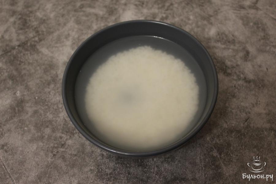 1. Рис залейте кипятком и дайте воде полностью остыть, после чего рис откиньте на дуршлаг и промойте под водой.