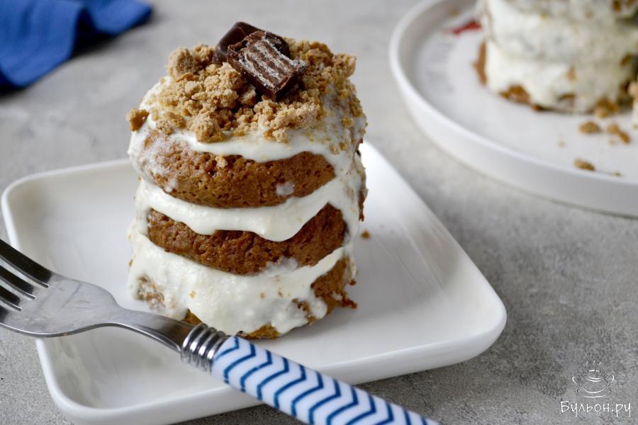 8. Одно овсяное печенье раскрошите и посыпьте им верх пирожного, украсьте по желанию. Поставьте пирожное в холодильник на несколько часов, а лучше на ночь, чтобы пирожное как следует пропиталось кремом.