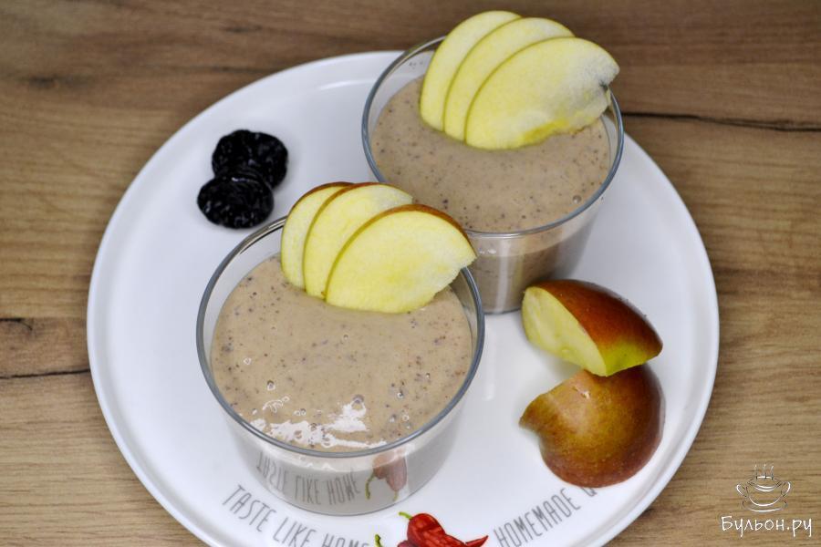 6. Разлейте смузи в стаканы и украсьте по желанию. Можно украсить тонкими ломтиками яблока или кусочками чернослива.