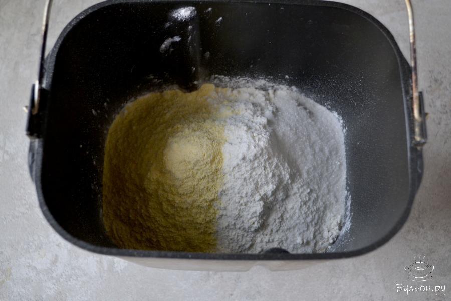 В моей копилке рецептов домашнего хлеба появился еще один рецепт - хлеб из кукурузной и пшеничной муки на ржаной закваске. Выпекать хлеб я буду, как обычно, в хлебопечке. Можно испечь его и в духовке, если у вас нет хлебопечки. Хлеб получается очень вкусный, совсем не крошится при нарезании, имеет мелкопористую структуру, кажется чуть влажным, но он полностью пропечен. Кукурузная мука придает ему легкий, едва желтоватый оттенок. Испекла такой хлеб впервые, но точно не последний раз.