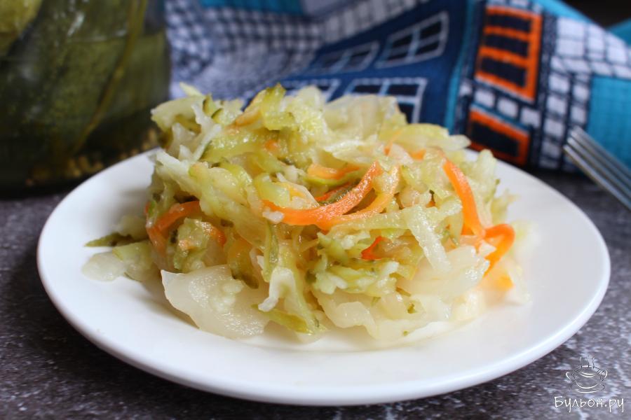 На повседневный стол, для постного и вегетарианского меню попробуйте приготовить салат из квашеной капусты с яблоком и солеными огурцами. Салат готовится за считанные минуты, очень просто. Такой салат получается легкий, бодрящий, очень сочный и аппетитный. Вкус салата всегда можно скорректировать исходя от вкуса квашенной капусты и соленых огурцов. Если мало кислинки, можно добавить лимонный сок, если салат сильно соленый, добавим больше яблок и чуть больше масла.