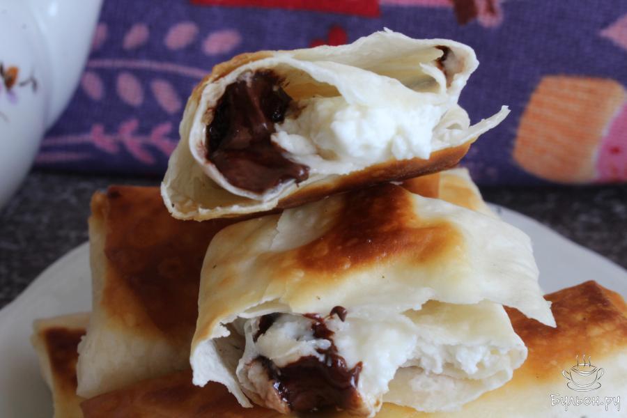 Когда хочется приготовить что-то быстрое к чаю, всегда можно сделать что-то вкусное из лаваша. Пирожки из лаваша с творогом и горьким шоколадом, как раз такое лакомство. Быстро, вкусно, просто. Пирожки получаются хрустящие, а внутри нежная творожная начинка с расплавленным шоколадом. На приготовление таких пирожков у вас уйдут минуты. Пирожки вкусные в горячем виде, но и остывшие они тоже очень даже аппетитные.