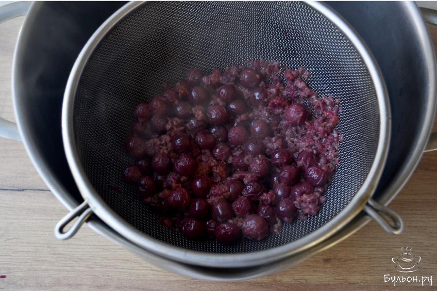 3. Процедите ягодный отвар через металлический дуршлаг. Ягоды протрите через сито. Косточки и жмых выбросьте. Попробуйте отвар, если необходимо, то добавьте кипяченой воды, чтобы получился отвар нужной вам концентрации.