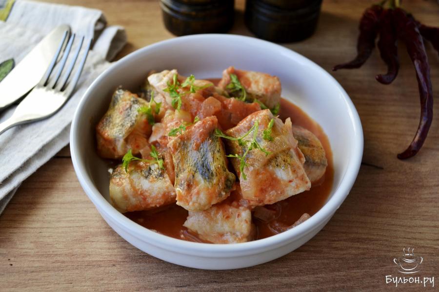 В Советском Союзе четверг был рыбным днем. Предлагаю продолжить эту замечательную традицию и сделать тоже рыбный день. Приготовим судака кусочками, тушеного с луком и кетчупом на сковороде. Рецепт очень удачный, на мой взгляд. Минимум продуктов, готовится быстро, получается вкусно. В остывшем виде блюдо можно подать, как рыбную закуску. Но в горячем, сразу со сковороды мне понравилось больше. К тушеному судаку в качестве гарнира, можно подать отварной рис или картофельное пюре - получится очень вкусно!