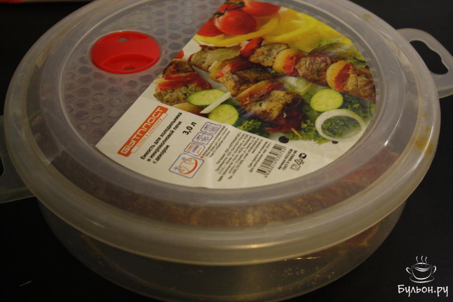 5. Миску плотно закрыть крышкой, либо пищевой пленкой. Оставить мариноваться на 30 минут при комнатной температуре, либо на час и более в холодильнике.