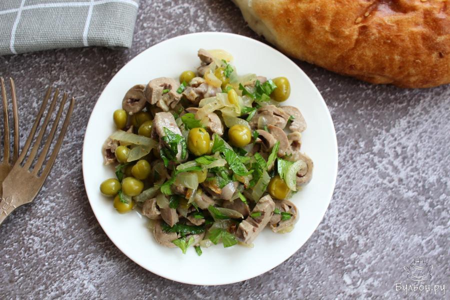 Салат из куриных сердечек с луком и зеленью понравится людям, кто любит блюда из субпродуктов. Салат получается сытный, вкусный, насыщенный и ароматный. Такой салат можно даже подать вместо основного блюда, на обед или ужин. Этот салат готовить очень просто. Зелень для приготовления вы можете взять другую, ту, которую любите. В салат, по желанию, можно добавить и другие овощи, болгарские перцы, морковь и обжарить их вместе с луком.