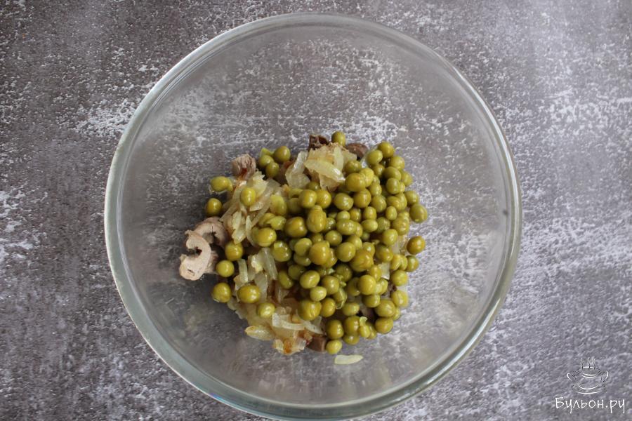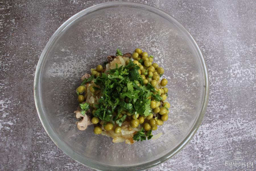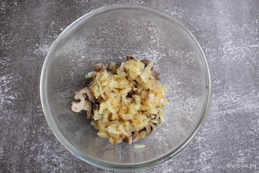 3. Лук почистить, промыть, мелко нарезать и обжарить его на сковороде с разогретым маслом до мягкости.