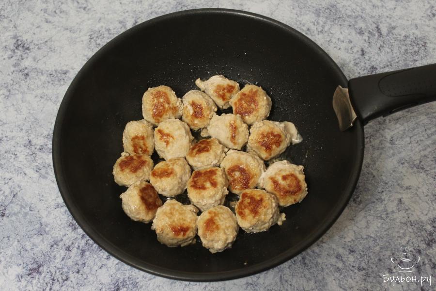 1. Свинину с 1 луковицей пропустите через мясорубку, поперчите, посолите и перемешайте. Из получившего фарша сформируйте фрикадельки и обжарьте их на растительном масле.