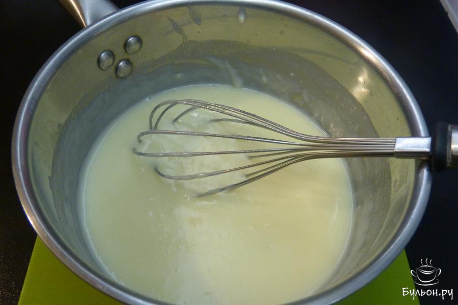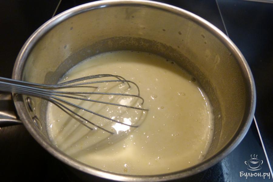 8. Получившаяся масса по консистенции должна быть, как жидкая сметана, потому что при остывании она загустеет. Пока смесь остывает, ее нужно периодически перемешивать, чтобы не образовывались комочки и пленка.