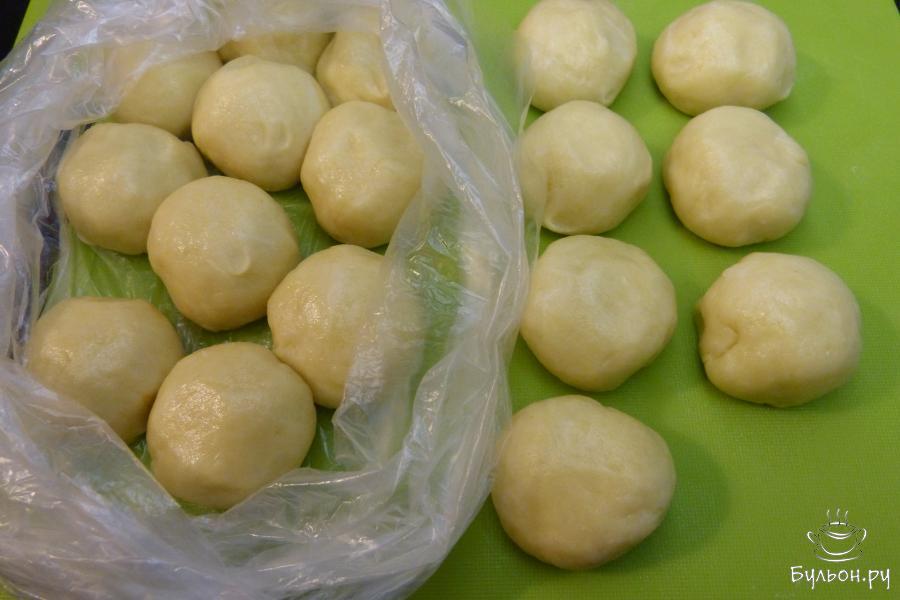 4. Скатанные шарики сложить в полиэтиленовый мешочек и убрать в холодильник на 30-40 минут, чтобы не были мягкими, иначе тяжело будет раскатывать.