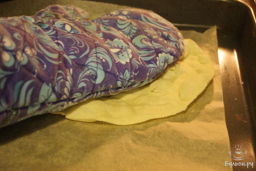 12. Аккуратно, чтобы не обжечься, прихлопнуть их прихваткой или полотенцем. Главное не упустить этот момент, потому как корж быстро подсохнет и начнет крошиться.