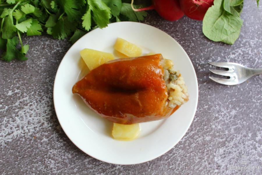 Зимой и весной, когда еще не сезон болгарских перцев, тогда на помощь приходят заготовки. Консервированные целые перцы отлично подходят для фарширования, блюдо из таких перцев получается такое же вкусное, как и из свежих перцев. Консервированные перцы, фаршированные мясом и рисом отлично подходят для обеда или ужина. Фарш для приготовления всегда можно взять свой любимый, овощи под перцы можно добавить по своему вкусу или не добавлять вообще.