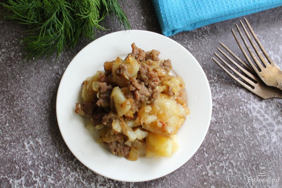 Простое и вкусное блюдо всегда к столу. Когда нет времени долго стоять у плиты, когда нет времени искать необычные рецепты, попробуйте приготовить такое незатейливое блюдо. Картошка с фаршем и луком на сковороде получается очень насыщенная, сытная, вкусная и ароматная. Такое блюдо всегда можно дополнить любимыми пряностями, добавить душистую зелень. Фарш для приготовления выбирайте тот, который вы обычно используете.
