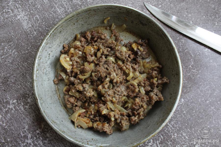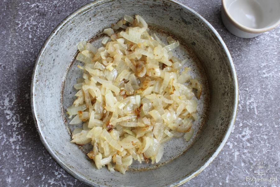 2. Лук почистить, промыть и мелко нарезать. На сковороде разогреть масло и обжарить лук до румяного цвета.