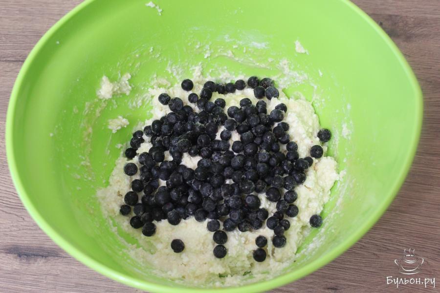3. Добавьте ягоды черники и тщательно перемешайте, чтобы они равномерно распределились по всему тесту.