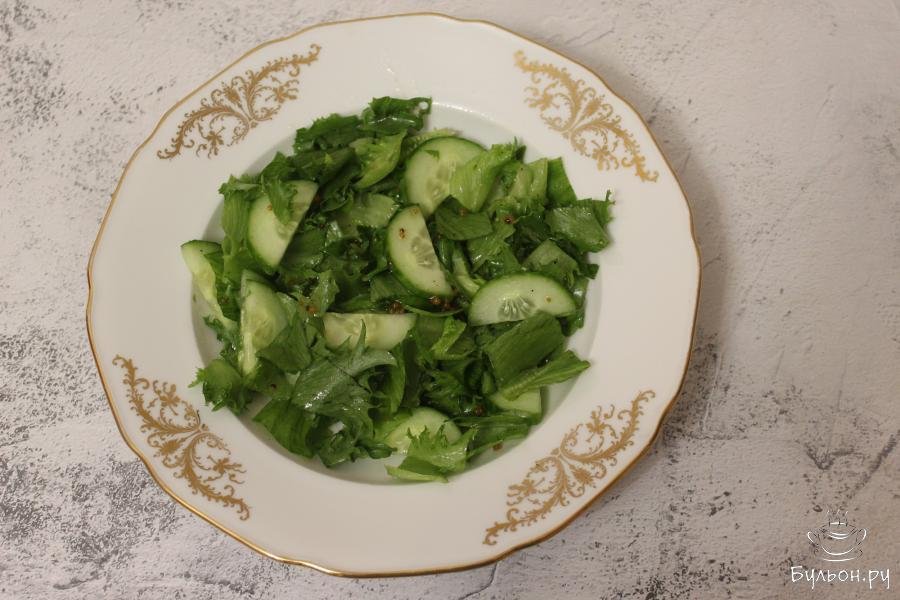 Я очень люблю зеленые яркие салаты. И одним из таких любимых является салат с пикантной заправкой и слабосоленой горбушей. Вместо слабосоленой горбуши можно использовать другую красную рыбу, а можно даже добавить в салат подкопченную рыбку. Хорошим вариантом будет запеченная красная рыба. В остальном же следует следовать рецепту. Мне этот салат очень нравится своей заправкой. Она придает салату пикантность, сладость и остринку.