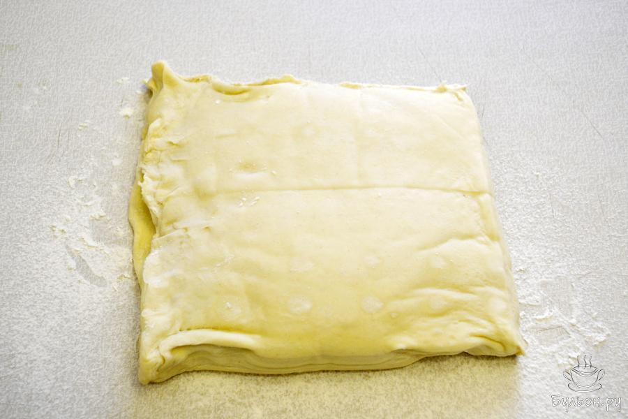 4. Затем накройте джем свободным концом прямоугольника, на котором сделаны надрезы. Края прямоугольника немного прижмите.