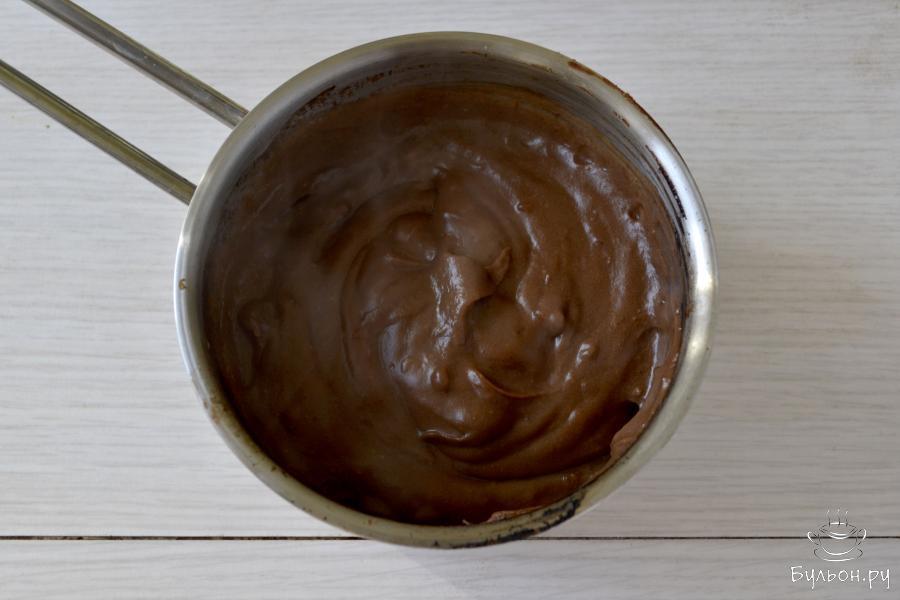 3. Разведите в холодной, кипяченой воде картофельный крахмал и влейте тонкой струйкой в кипящее молоко с какао-порошком.