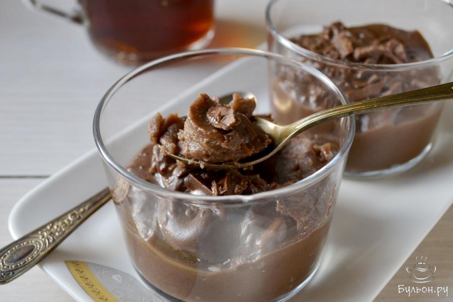 Шоколадный пудинг для любителей шоколадных десертов. Для приготовления пудинга вам потребуется молоко, какао-порошок, сахар и картофельный крахмал. Крахмал можно взять, как картофельный, так и кукурузный. Пудинг получается очень нежный, с ароматом какао. Поэтому, украсить его вид и подчеркнуть вкус можно различными добавками. Готовый пудинг можно подать, полив сиропом, посыпав орешками, тертым шоколадом, или положив шарик мороженого.