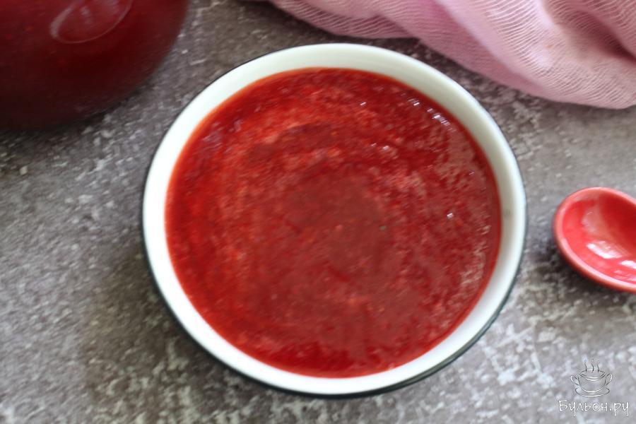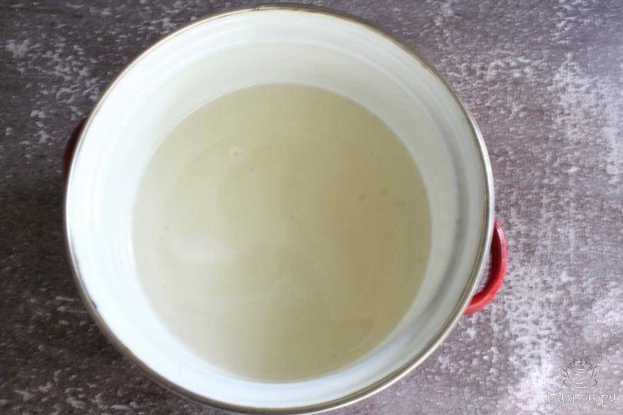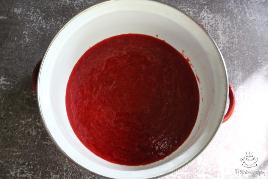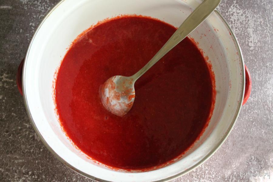 5. Прокипятить сироп до растворения сахара. Дать немного остыть. На каждый стакан протертого ягодного пюре нужно взять 1,5 стакана сахарного сиропа.