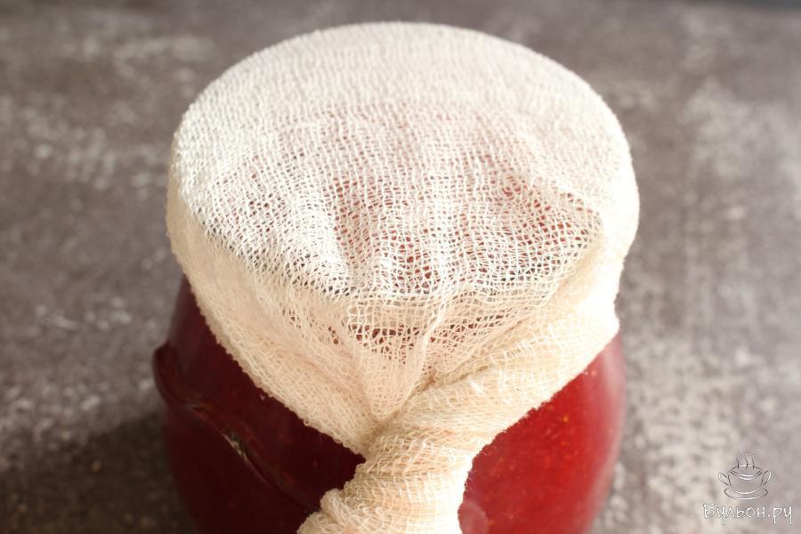 8. Завязать горлышко баночек марлей, сложенной в несколько слоев. Убрать баночки на солнце и оставить так стоять 4 дня.