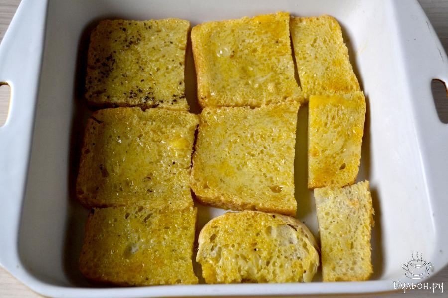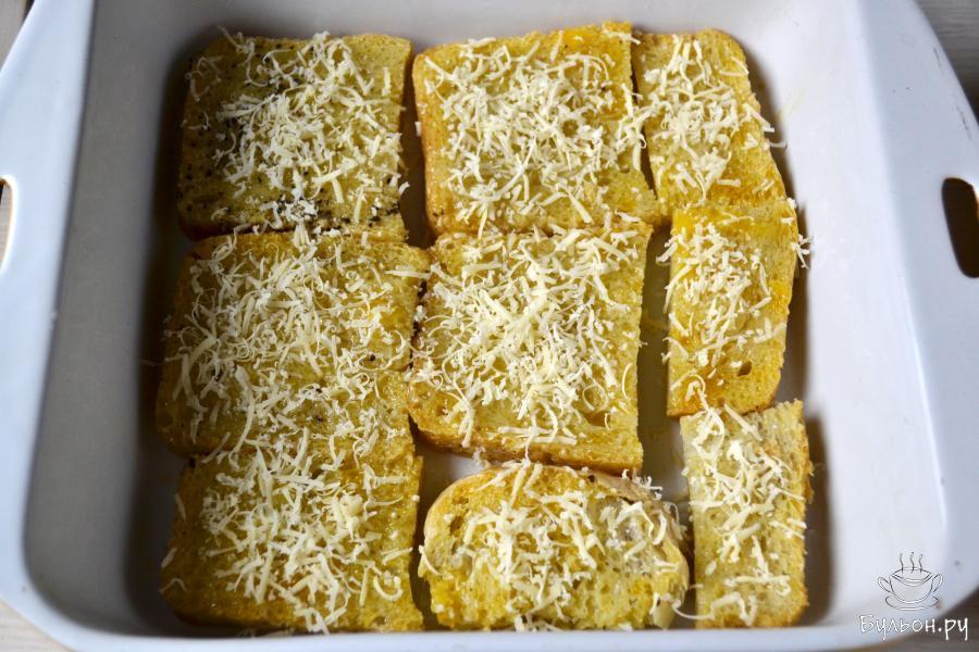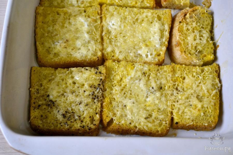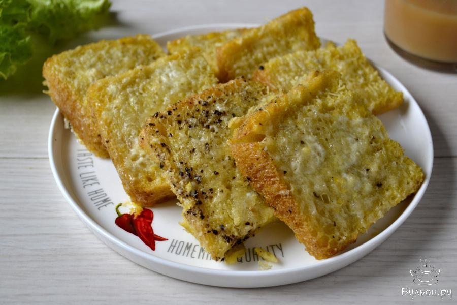 Из немного подсохшего, белого хлеба можно приготовить вкусные запеченные тосты. Хлеб нужно обмакнуть во взбитые, с солью и черным молотым перцем, яйца. Затем уложить подготовленный хлеб в форму для запекания, посыпать натертым сыром и запечь в духовке. Запеченный хлеб получается мягкий внутри и с чуть хрустящей корочкой. Тосты хорошо приготовить на завтрак или полдник, а так же на перекус. Подавать тосты можно к чаю, кофе.