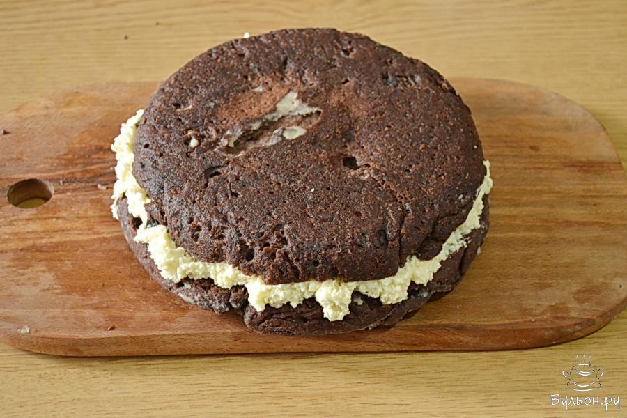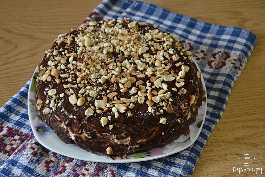 18. Обмазать верх и бока торта растопленным шоколадом и обсыпать орешками. Шоколадный торт в мультиварке готов.