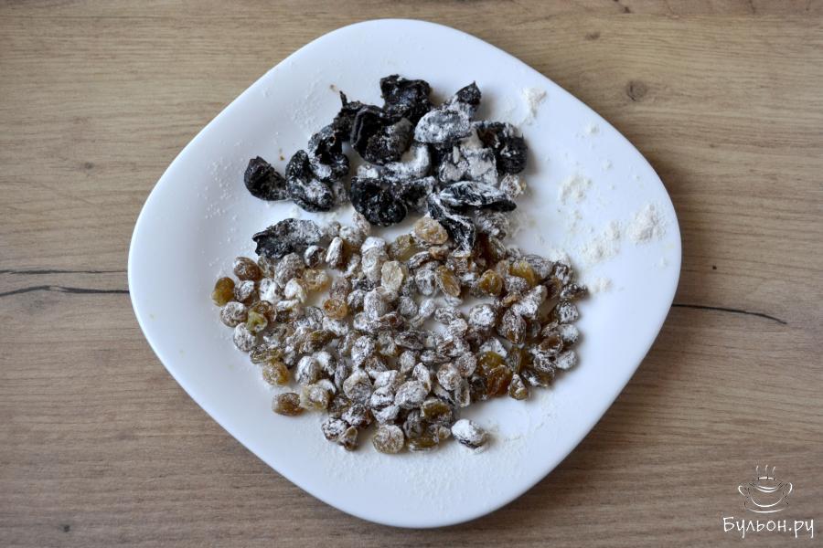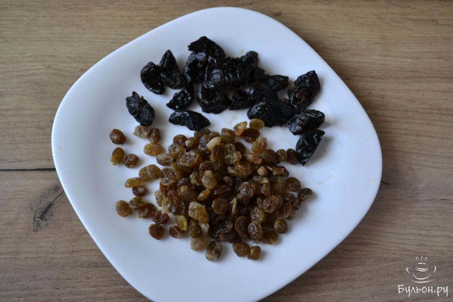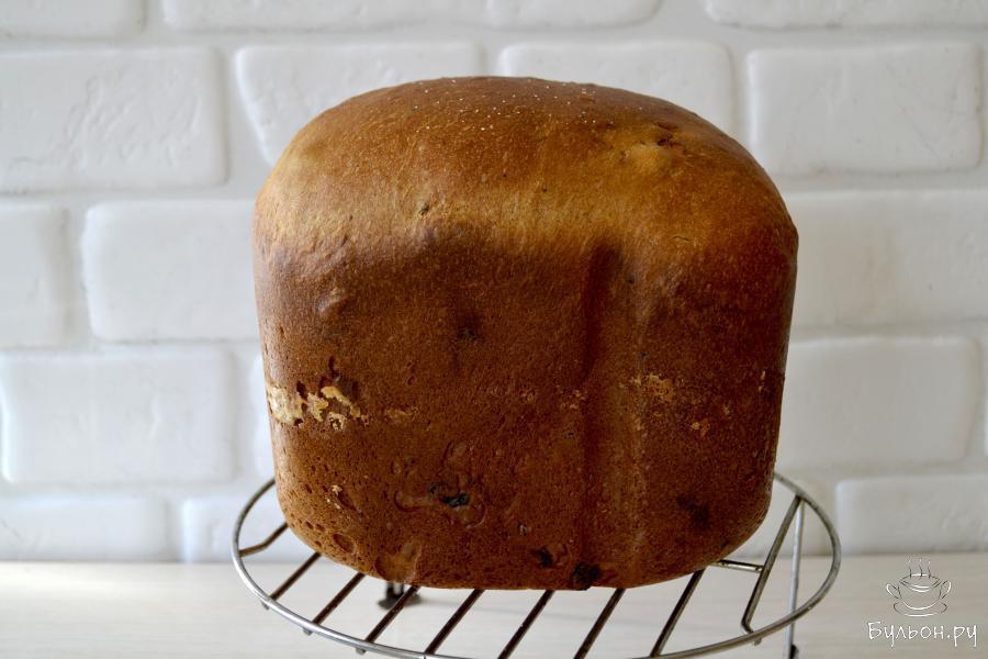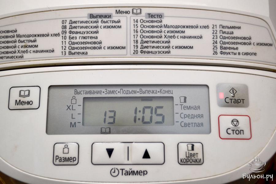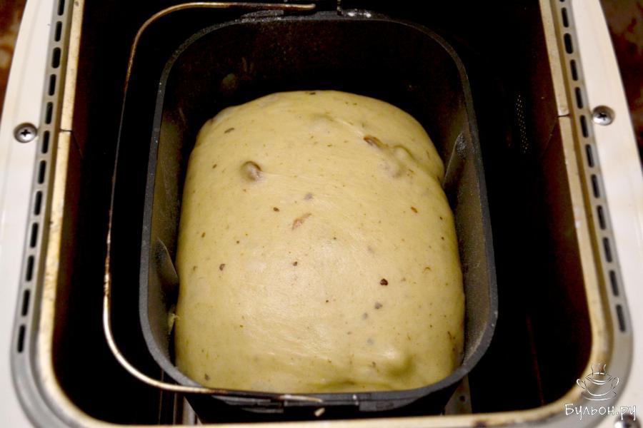 8. Поставьте ведерко в хлебопечь, установите режим "Замес теста". На моей хлебопечке продолжительность этой программы 2 часа 20 минут. После основного замеса всыпьте изюм и нарезанный чернослив.