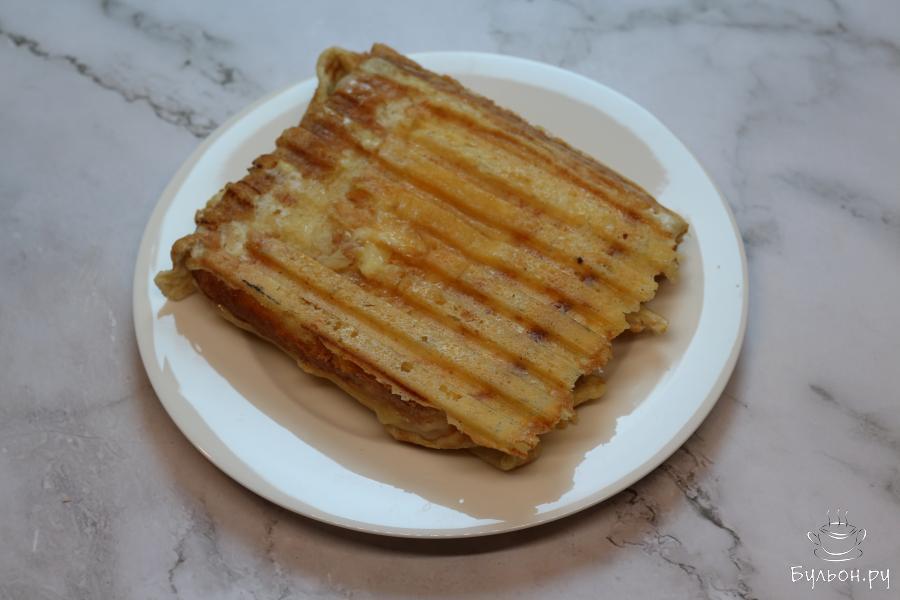 6. Сложите бутерброд пополам, прижмите крышкой гриля. Жарьте еще 1 минуту и подавайте сразу к столу.