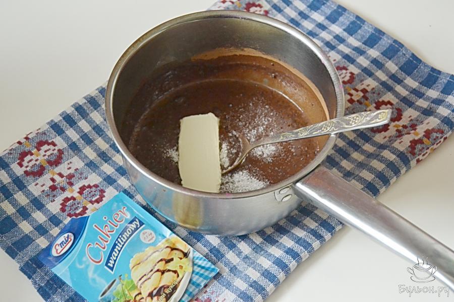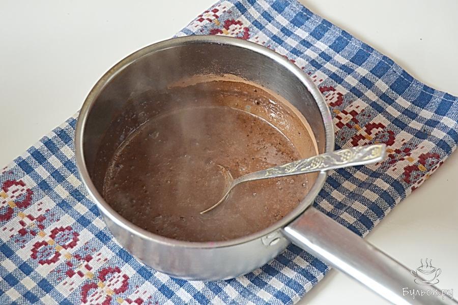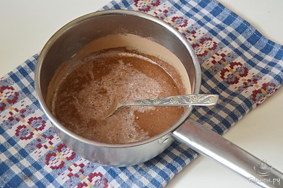 5. Теперь нам придется уделить внимание нашей глазури. Довести массу до кипения, затем проварить при слабом кипении минут пять. Все время кипения нам нужно будет глазурь помешивать. Когда масса загустеет, варку закончить.