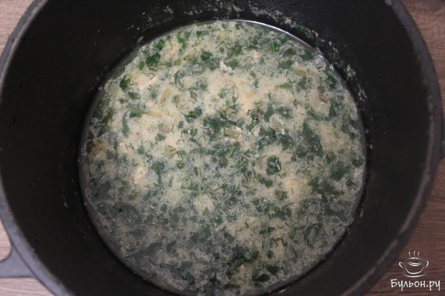 5. Через указанное время откройте крышку казана, добавьте измельченный укроп и тушите еще 5 минут, при открытой крышке.