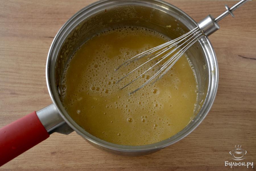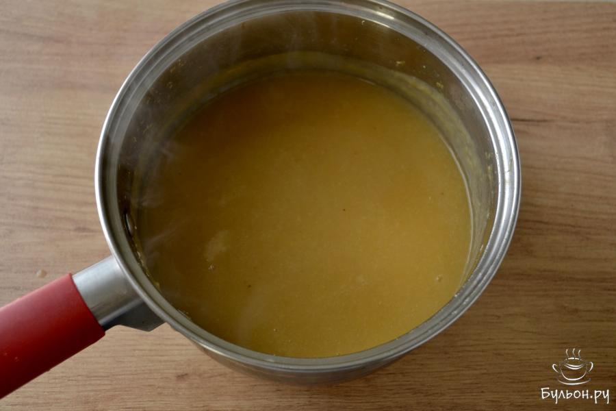 7. Поставьте сотейник на огонь, помешивая, доведите до кипения, сделайте огонь минимальным и проварите 7-8 минут, помешивая.