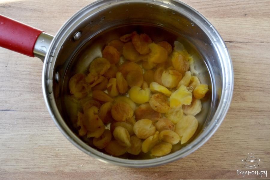 1. Курагу тщательно промойте, проверьте, что в плодах нет косточек. Если курага очень сухая, то залейте ее холодной водой на полчаса.