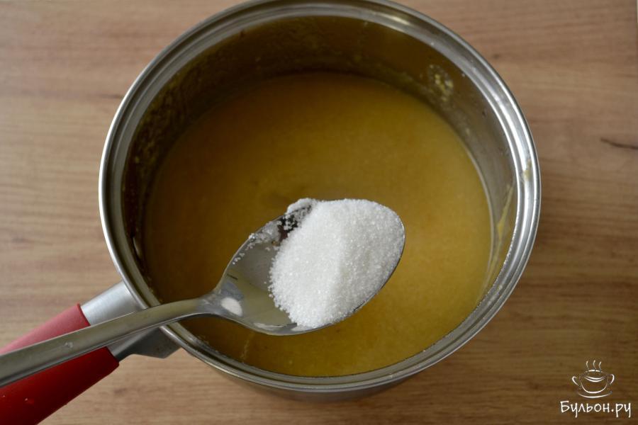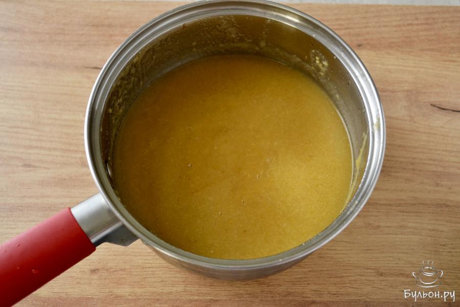 3. Погружным блендером измельчите содержимое сотейника до однородной консистенции. Получилось не густое пюре.