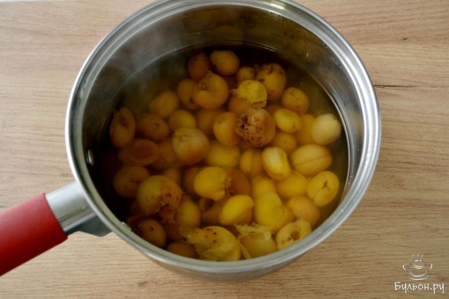 2. Залейте курагу водой, поставьте на огонь и сварите курагу до мягкости на медленном огне в течение 15-20 минут.