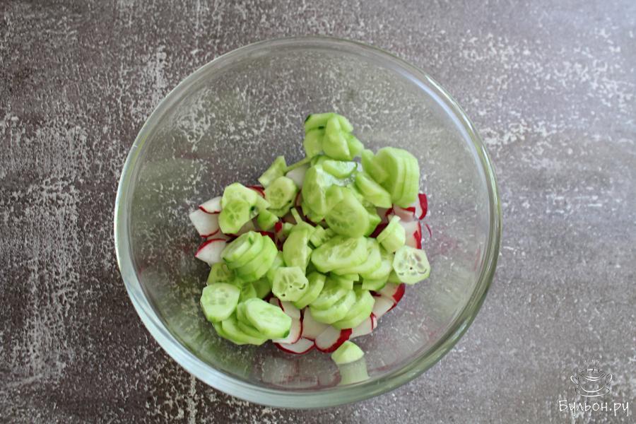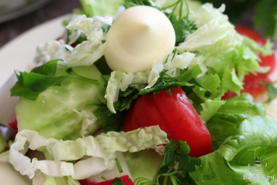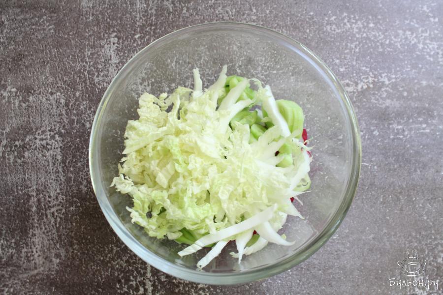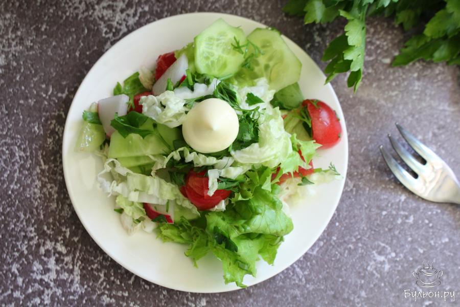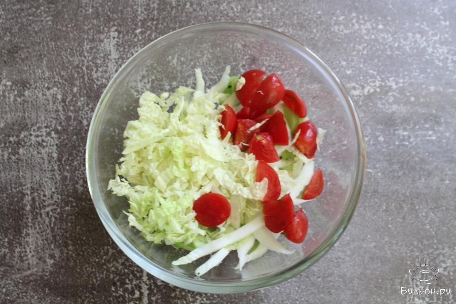 Овощной салат с пекинской капустой, огурцами и помидорами