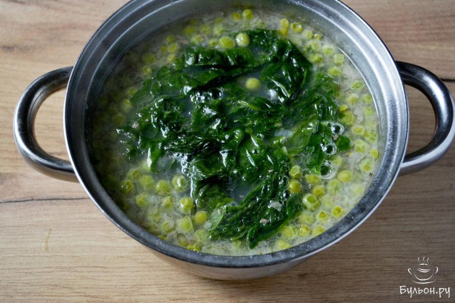 5. Добавьте нарезанный шпинат. Доведите до кипения, проварите еще 2-3 минуты и можно снимать кастрюлю с огня.