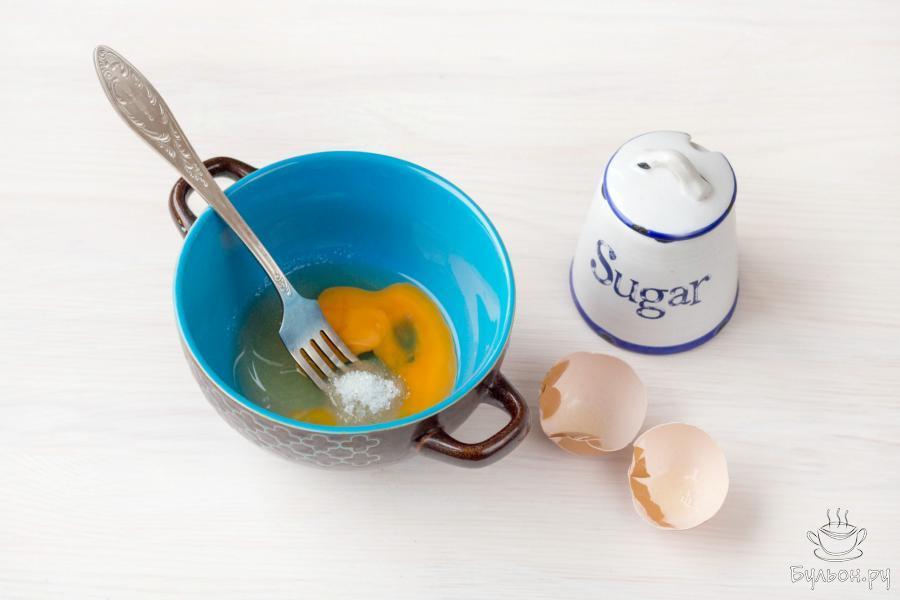 2. В отдельной емкости взбейте куриное яйцо с сахаром, до получения однородной массы и растворения сахара. Количество сахара можно регулировать по своему вкусу.