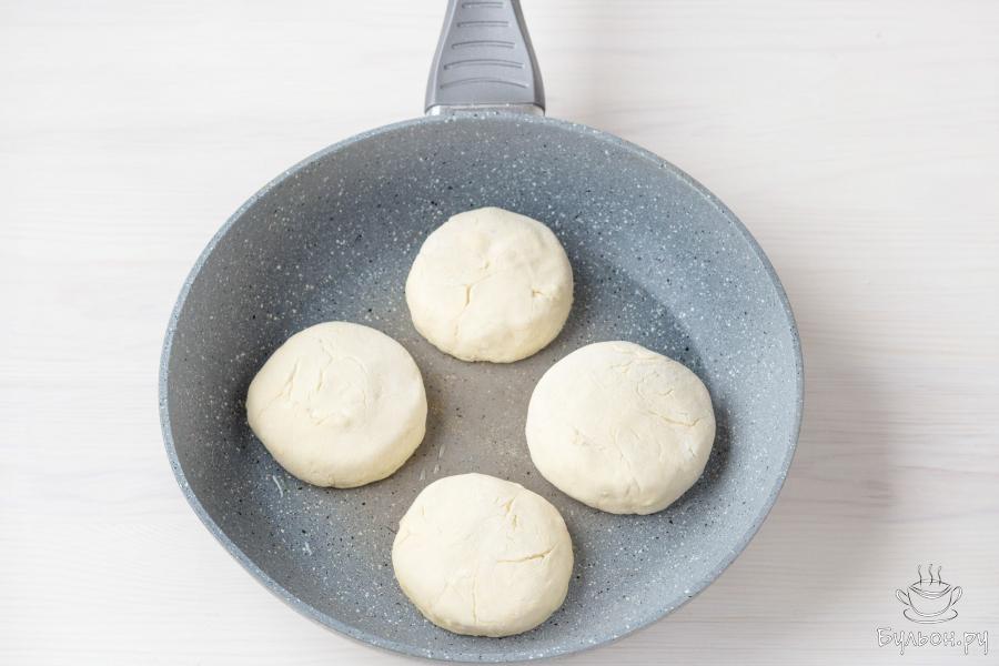 13. Стряхните излишки муки и выложите подготовленные сырники на разогретую сковороду, смазанную небольшим количеством растительного масла. Обжаривайте сырники на небольшом огне до золотистого цвета, 2-4 минуты.