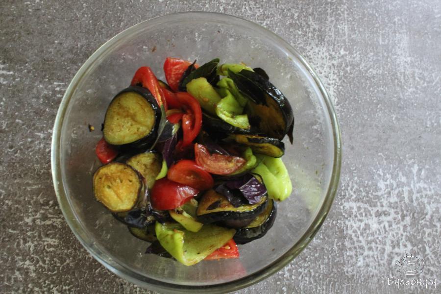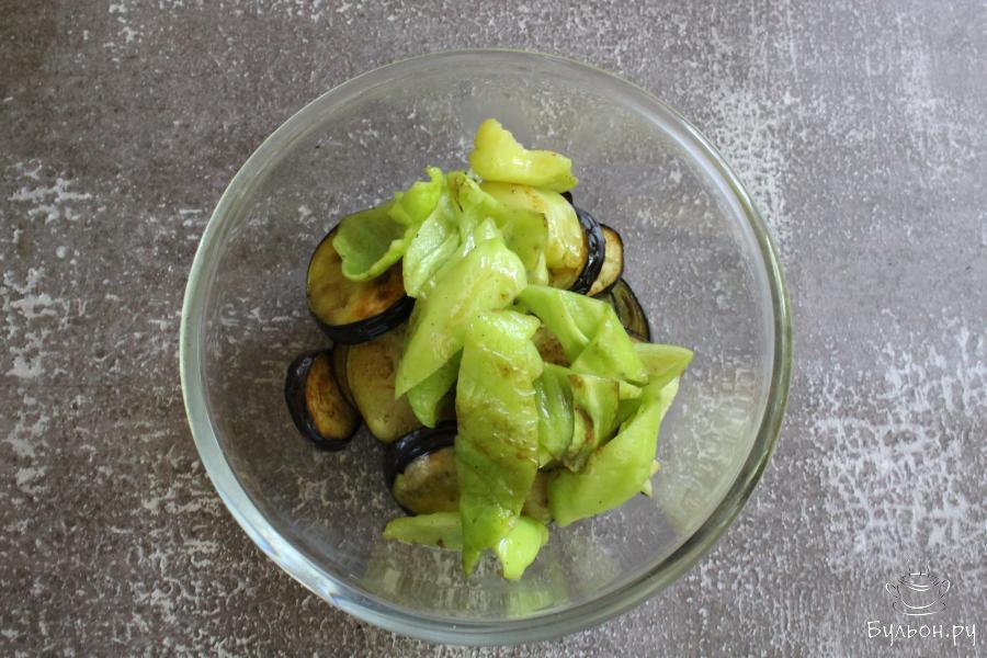 3. Выложить жареные овощи в чашку. Если вы привыкли выкладывать жареные баклажаны сначала на бумажное полотенце, то можно сделать так.