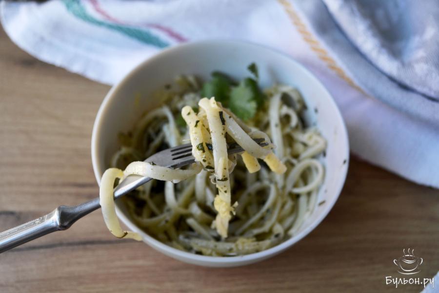 5. Подавайте макароны с соусом песто и сыром сразу к столу, пока они горячие, посыпав черным молотым перцем. Приятного аппетита!
